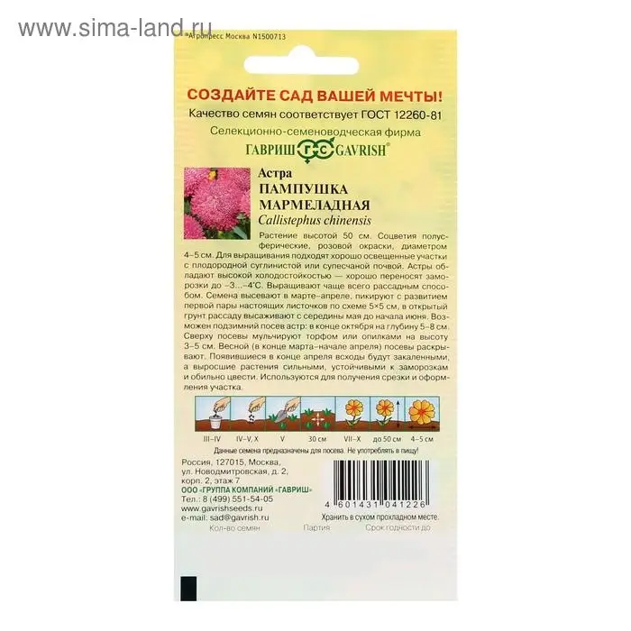 Семена цветов Астра Пампушка мармеладная, помпонная, розовая, О, ц/п, 0,3 г