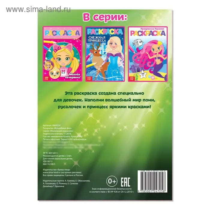 Раскраска для девочек «Волшебные феи», А5, 12 стр.