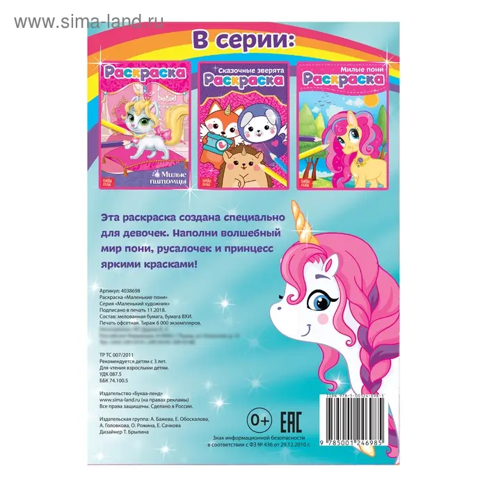 Раскраска для девочек «Маленькие пони», А5, 12 стр.