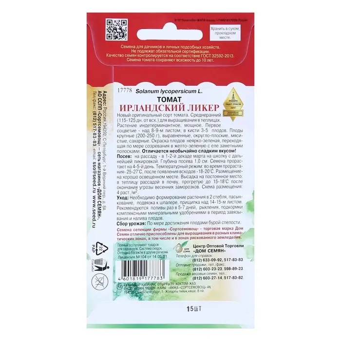 Семена Томат "Ирландский ликёр" Дом семян, среднеранний, индетерминантный,высокорослый,15 шт