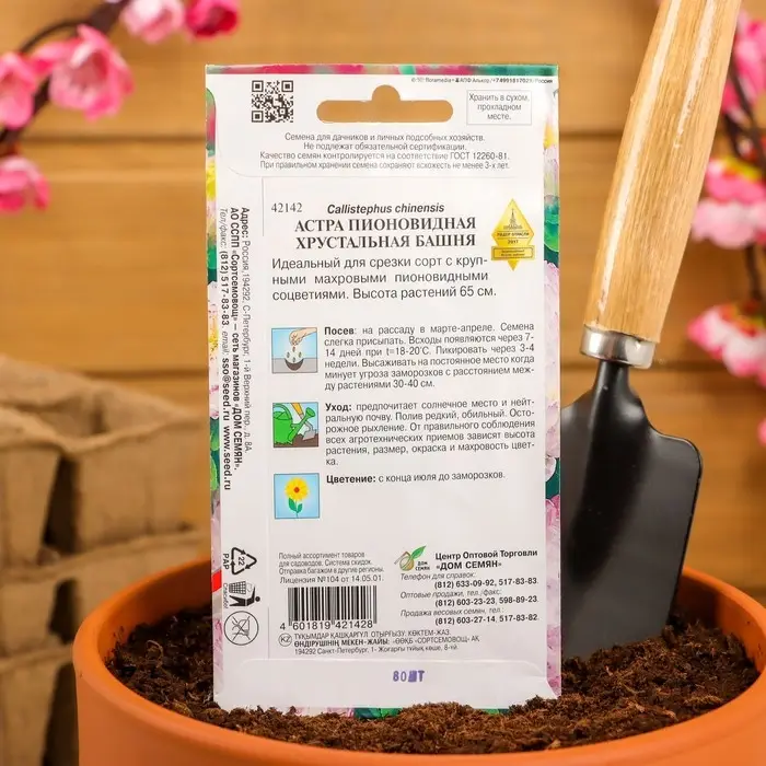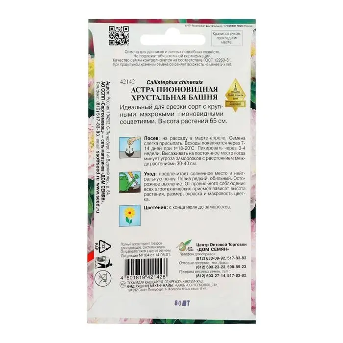 Семена цветов Астра пионовидная "Хрустальная Башня" Дом семян, О, 80 шт