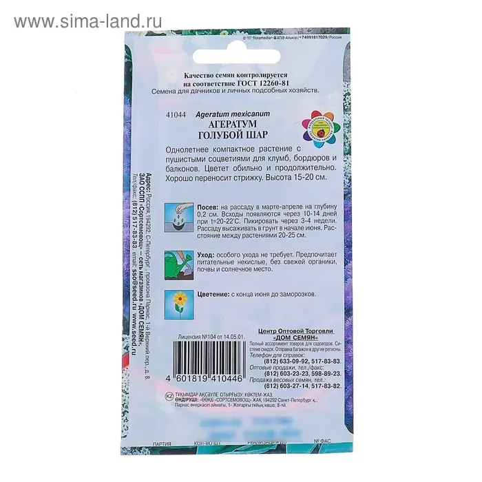 Семена цветов Агератум "Голубой шар" Дом семян, О, 200 шт