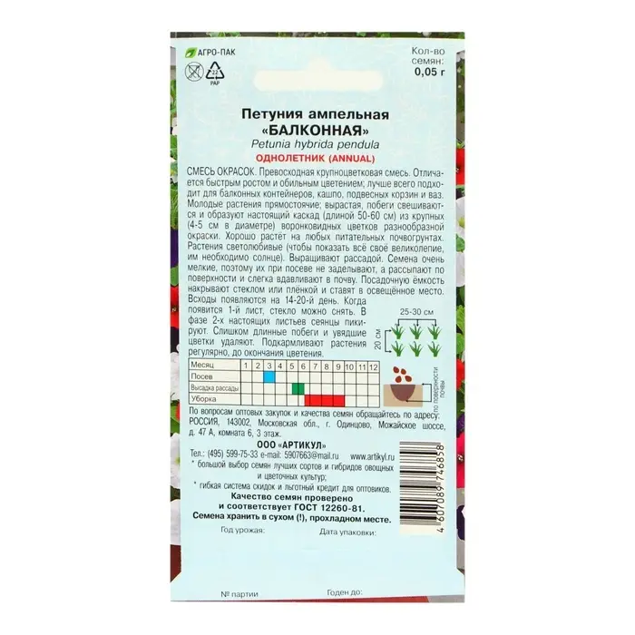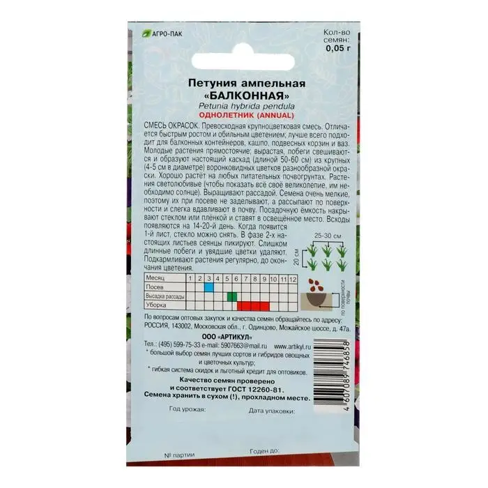 Семена цветов Петуния ампельная «Балконная», О, 0,05 г.