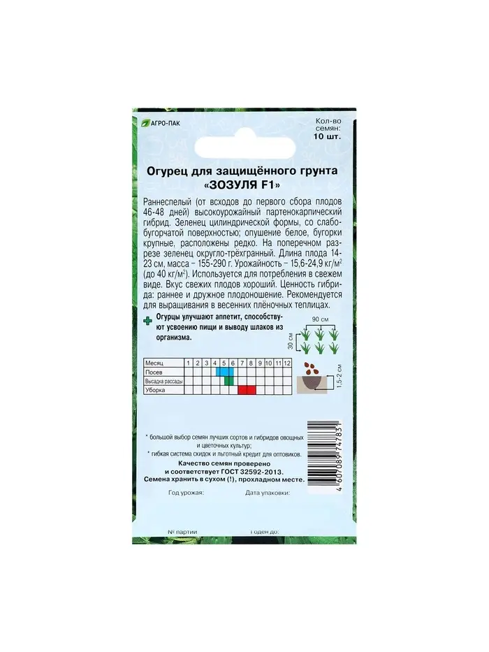 Семена Огурец «Зозуля», F1, раннеспелый, патернокарпический, 10 шт.
