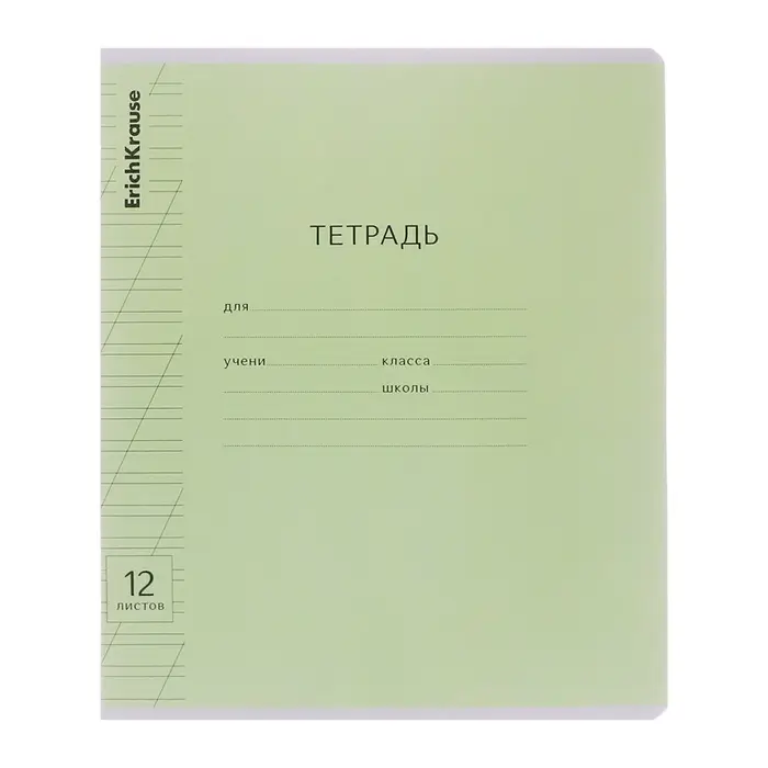Тетрадь 12 листов в косую линейку ErichKrause «Классика Visio», обложка мелованный картон, зелёная