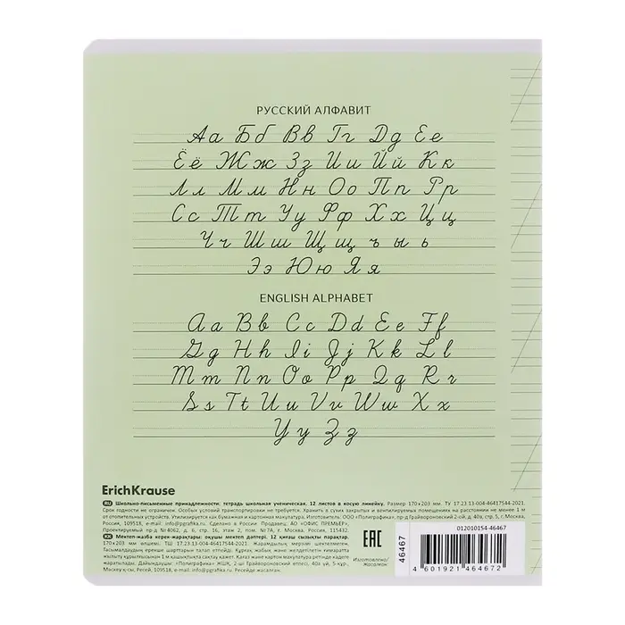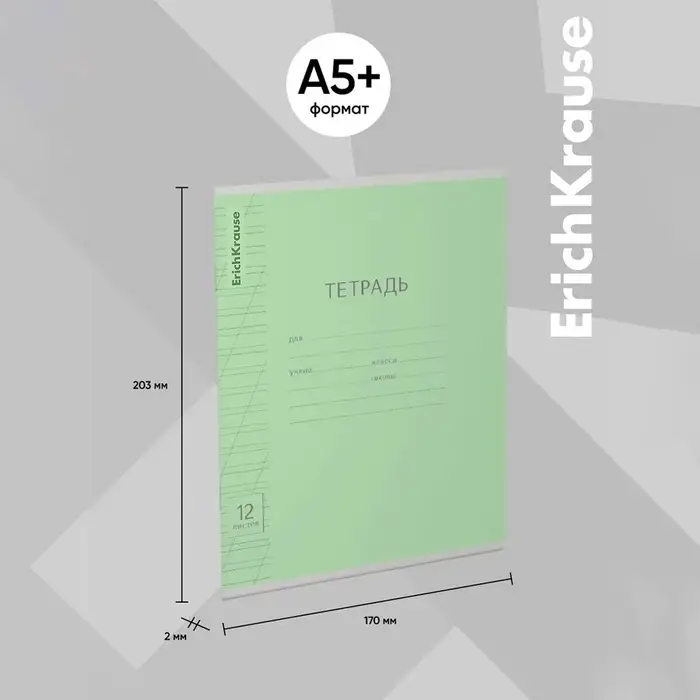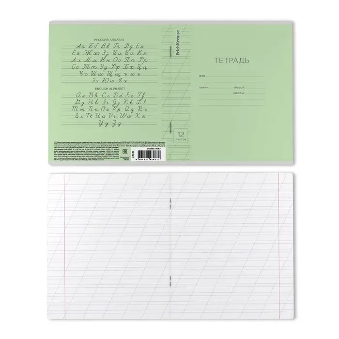 Тетрадь школьная ученическая формата А5+ (170 х 203 мм). Обложка из высококачественного мелованного картона плотностью 180 г/м2. В блоке 12 листов в косую линейку с полями. Бумага офсетная плотностью 60 г/м2. Цвет линовки - синий. Скругленные уголки обложки и блока. Тип скрепления - скоба. Тетради упакованы в термоусадочную пленку по 10 штук.