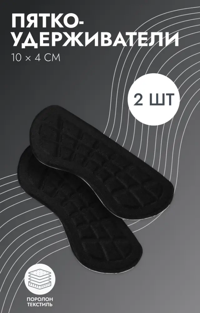 Пяткоудерживатели для обуви, на клеевой основе, 10×4 см, пара, чёрные