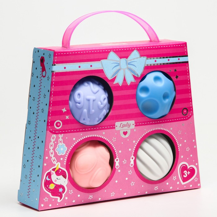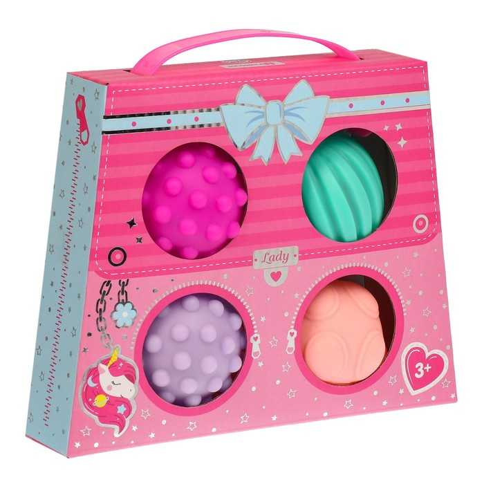 Набор развивающих тактильных мячиков «Сумочка», с пищалкой, 4 шт, Крошка Я