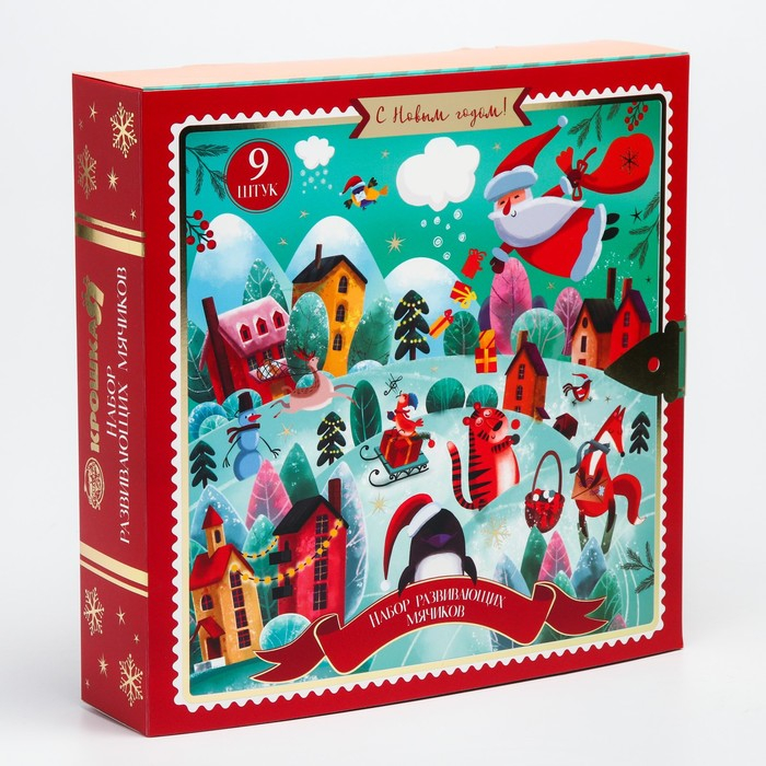 Подарочный набор развивающих, тактильных мячиков «Адвент-календарь», 9 шт., новогодняя подарочная упаковка, Крошка Я