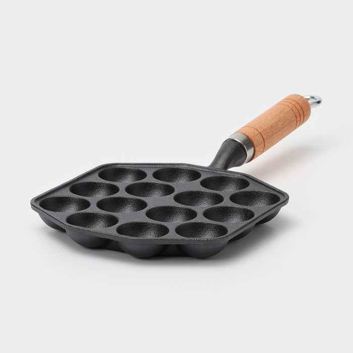 Сковорода чугунная «Сферос», 14 ячеек, 36×17×2,5 см, деревянная ручка