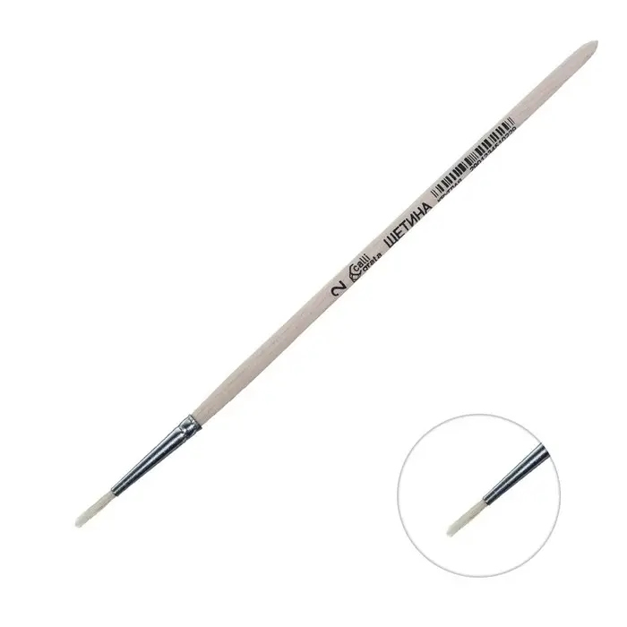 Кисть для рисования, Щетина круглая № 2 (диаметр обоймы 2 мм; длина волоса 12 мм), деревянная ручка, Calligrata