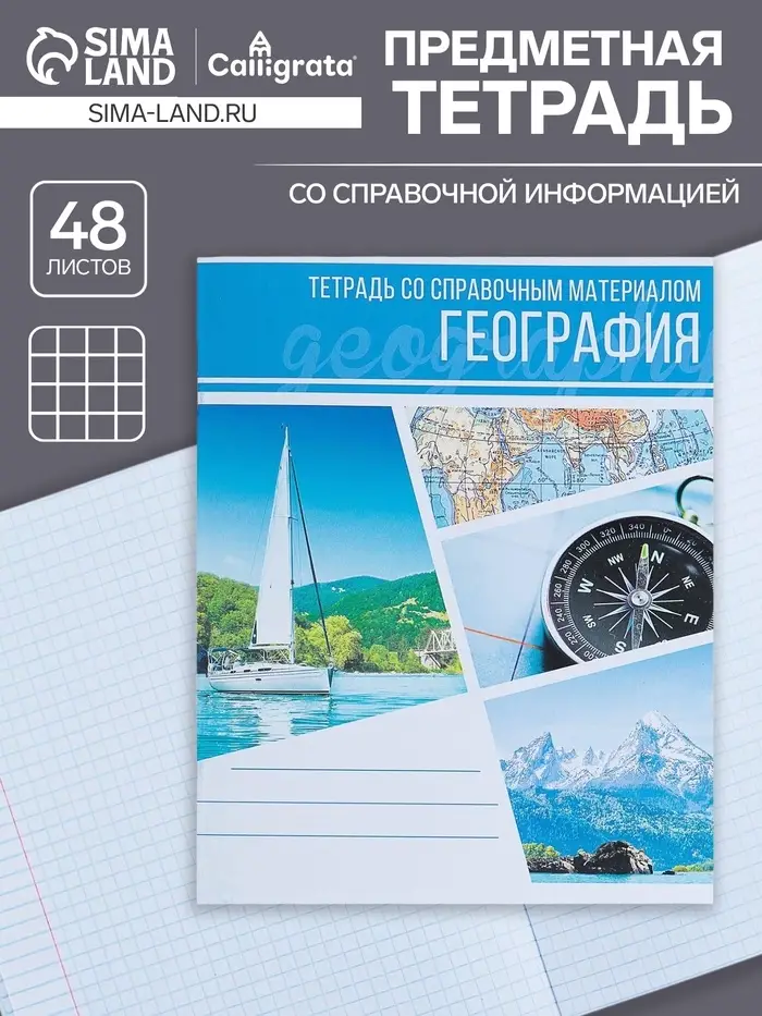 Тетрадь 48 листов в клетку «Буквица» География, белые листы