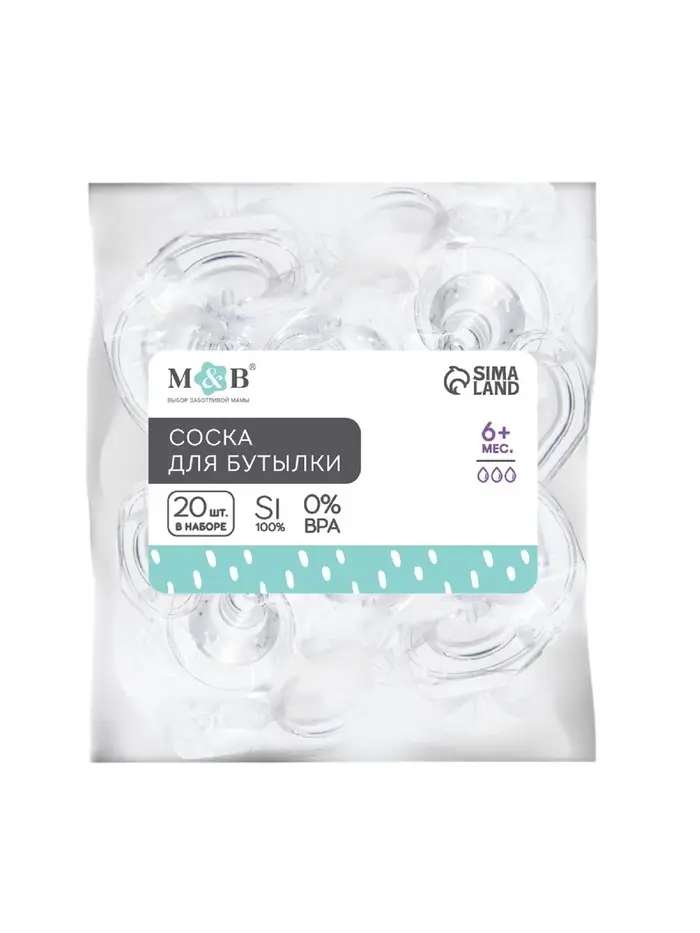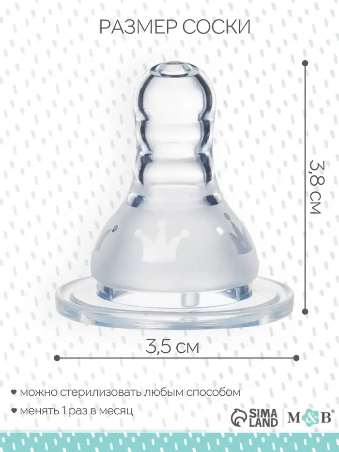 Соска на бутылочку, антиколиковая, M&B «Корона», от 6мес., классическое горло, быстрый поток, фасовка по 20 шт.