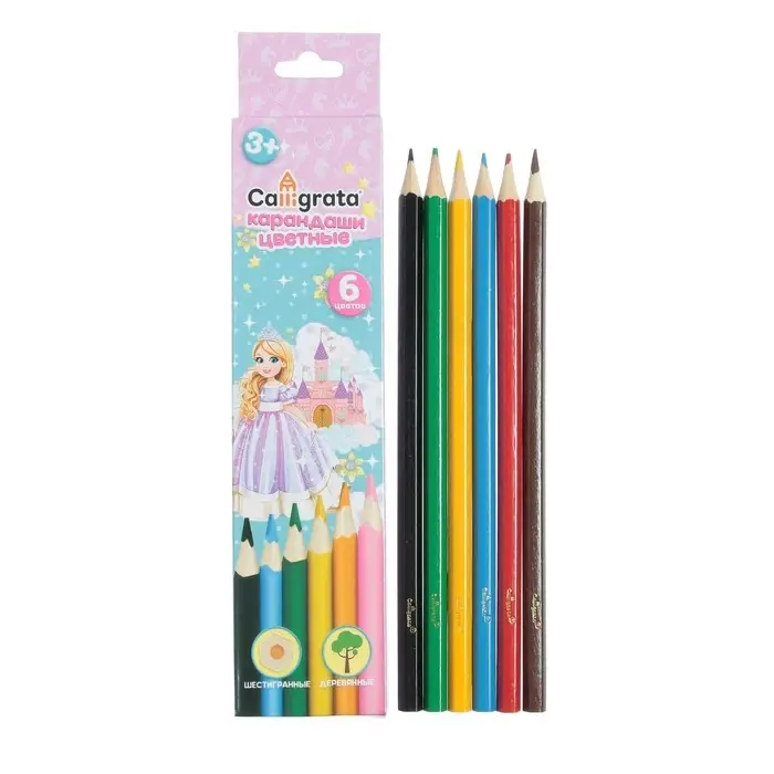Карандаши цветные 6 цветов «Принцесса», деревянные, шестигранные