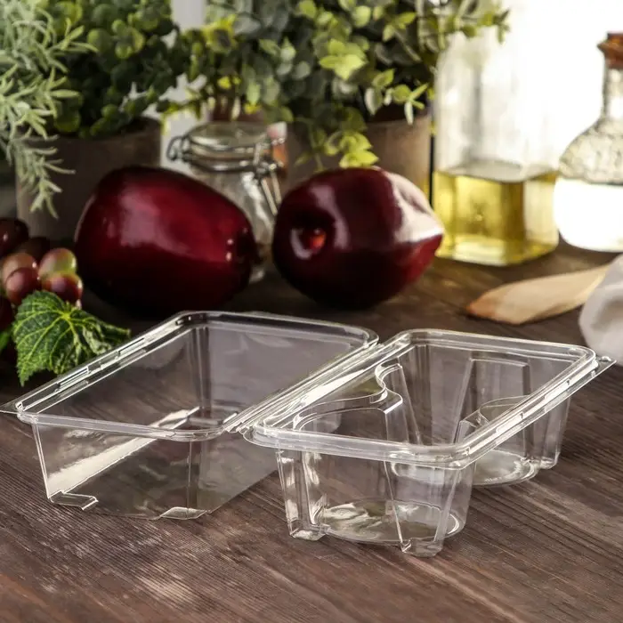 Контейнер одноразовый с неразъёмной крышкой ПР-ПК62С2, 2 секции, пластик, 18.8×13.8 см, прозрачный