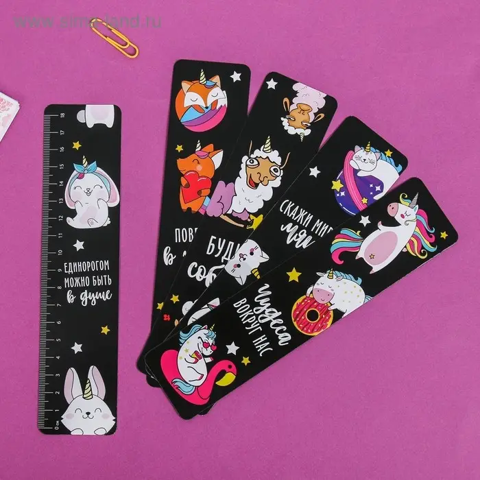 Закладки картонные, шпаргалки 5 шт «Миром правят единороги»
