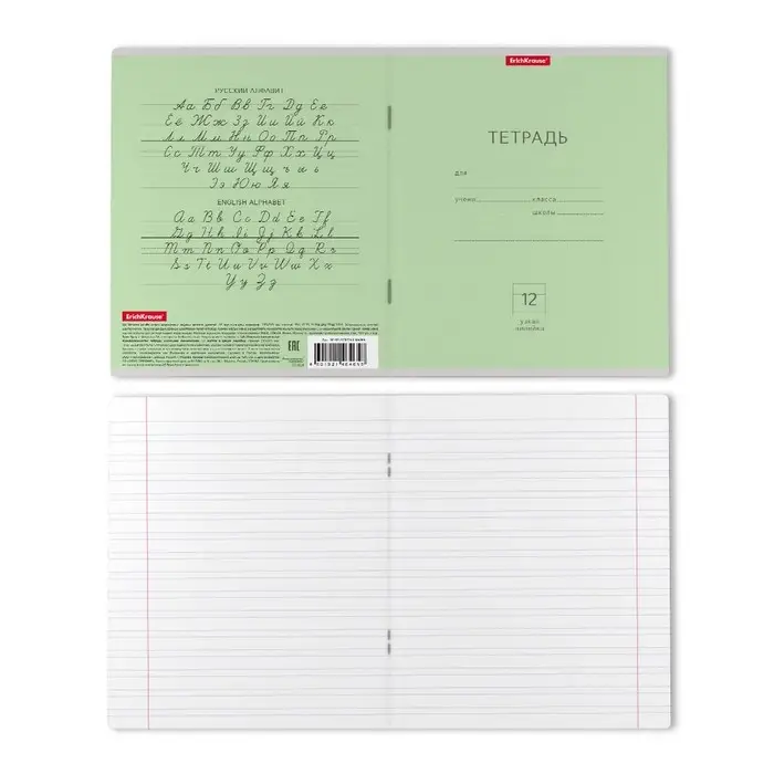Тетрадь школьная ученическая формата А5+ (170х203 мм). Обложка из высококачественного мелованного картона плотностью 180 г/м2. В блоке 12 листов в узкую линейку с полями. Бумага офсетная плотностью 60 г/м2. Цвет линовки - синий. Скругленные уголки обложки и блока. Тип скрепления - скоба. Тетради упакованы в термоусадочную пленку по 10 штук.