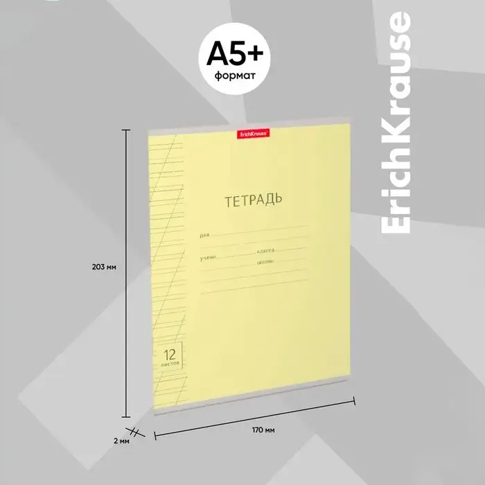 Тетрадь 12 листов в косую линейку ErichKrause «Классика Visio», обложка мелованный картон, жёлтая