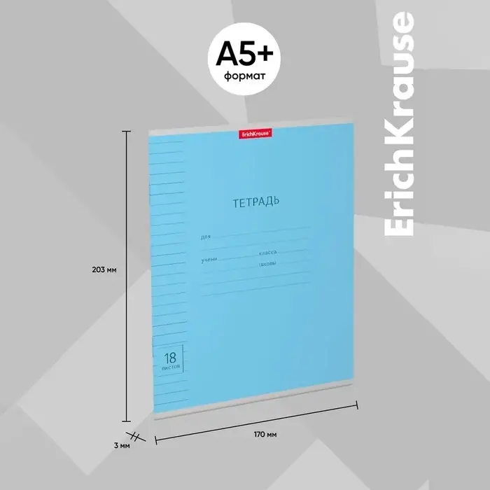 Тетрадь 18 листов в линейку ErichKrause «Классика с линовкой», картонная обложка, голубая
