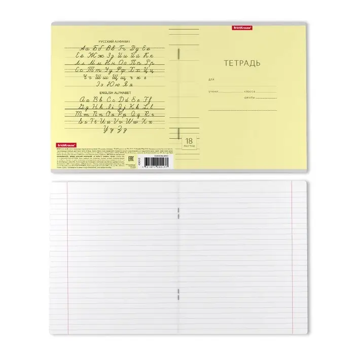 Тетрадь школьная ученическая формата А5+ (170 х 203 мм). Обложка из высококачественного мелованного картона плотностью 180 г/м2. В блоке 18 листов в линейку с полями. Бумага офсетная плотностью 60 г/м2. Цвет линовки - синий. Скругленные уголки обложки и блока. Тип скрепления - скоба. Тетради упакованы в термоусадочную пленку по 10 штук.