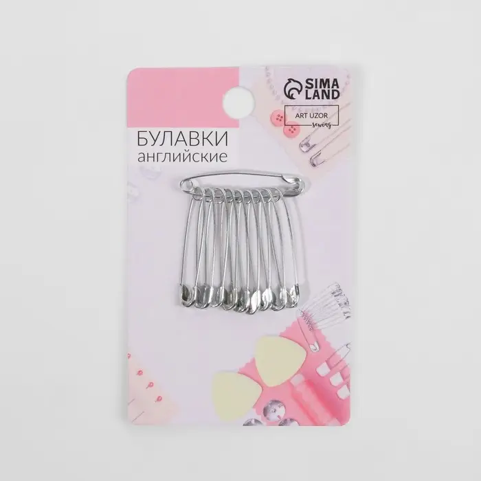 Английская булавка — универсальный помощник в быту, при шитье и рукоделии. Она пригодится для закалывания материала, драпировки ткани, создания украшений. С ней вы можете прикрепить к одежде или домашнему текстилю мягкие аксессуары. Острый край булавки прячется в безопасную петельку, она не уколет и прослужит вам долго.