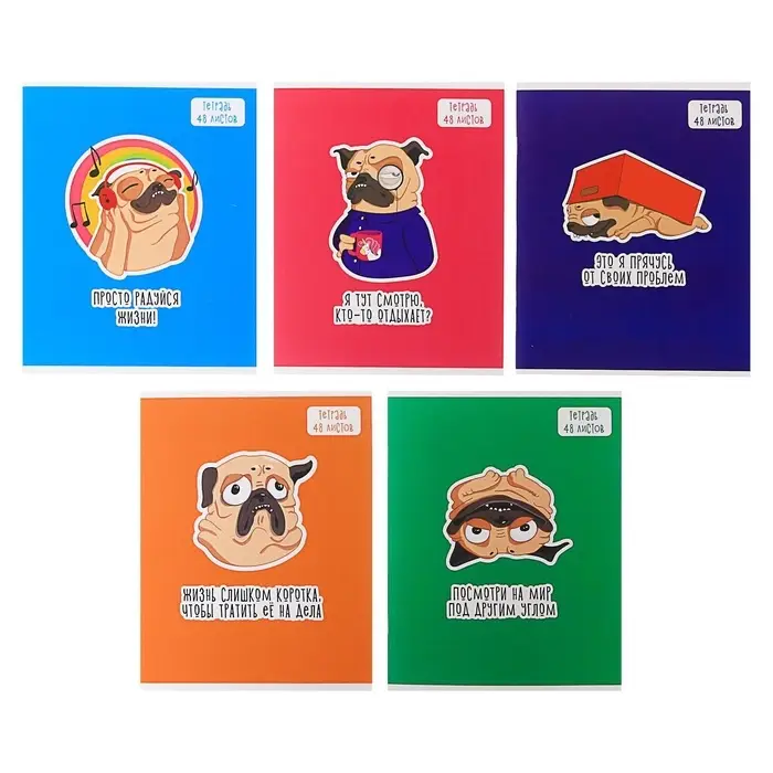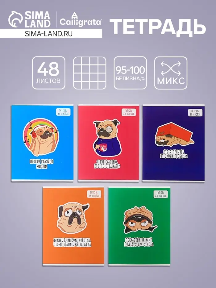 Тетрадь 48 листов в клетку Calligrata «Мопс», обложка мелованный картон, блок офсет, МИКС