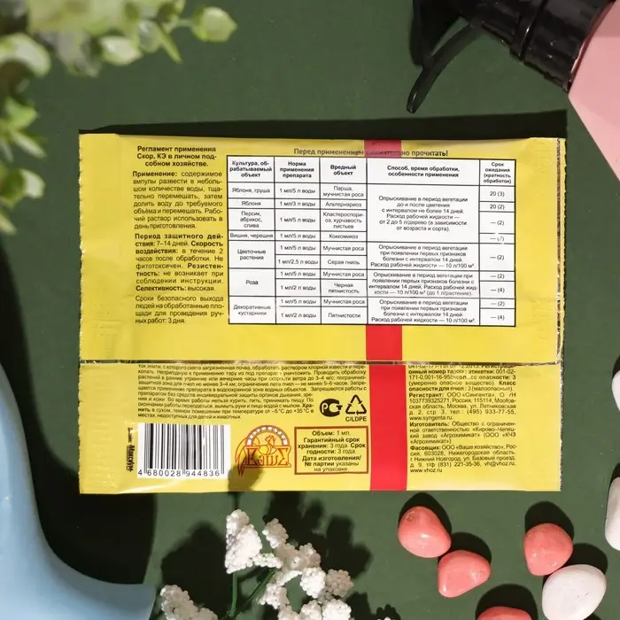 Системный фунгицид для защиты плодовых и овощных культур, картофеля, винограда и сахарной свеклы от комплекса болезней.