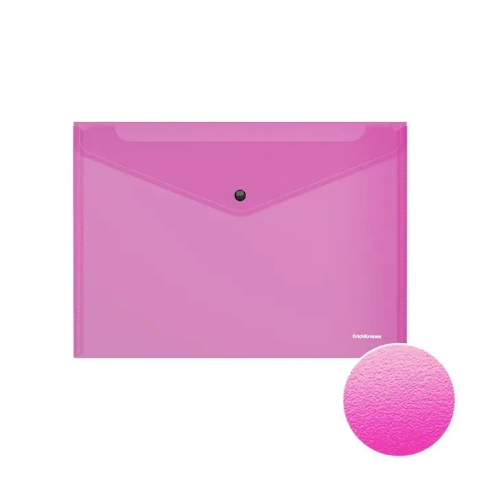 Папка-конверт на кнопке А4, 140 мкм, ErichKrause Fizzy Vivid, глянцевая, вмещает до 120 листов, полупрозрачная, микс