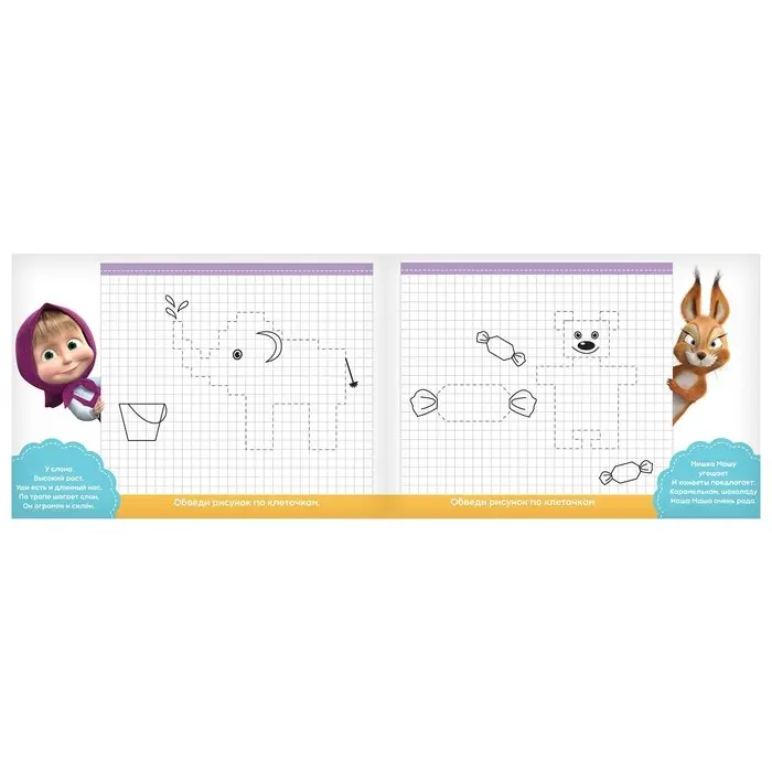 Внутри вы найдёте интересные задания. Выполняя их, малыш выучит буквы и подготовит руку к письму. Также в книге есть забавные иллюстрации с любимыми героями мультфильма «Маша и Медведь».