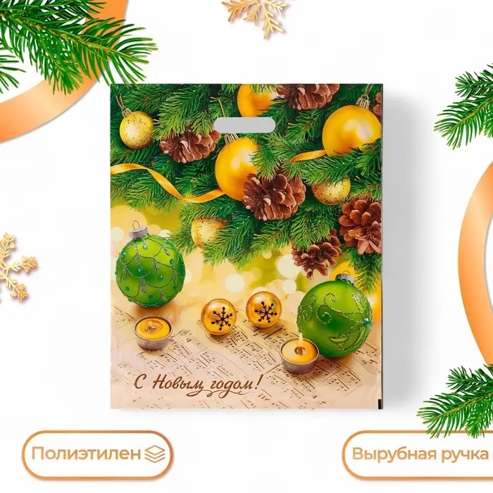 Пакет «Новогодняя увертюра», полиэтиленовый с вырубной ручкой, 47×40 см