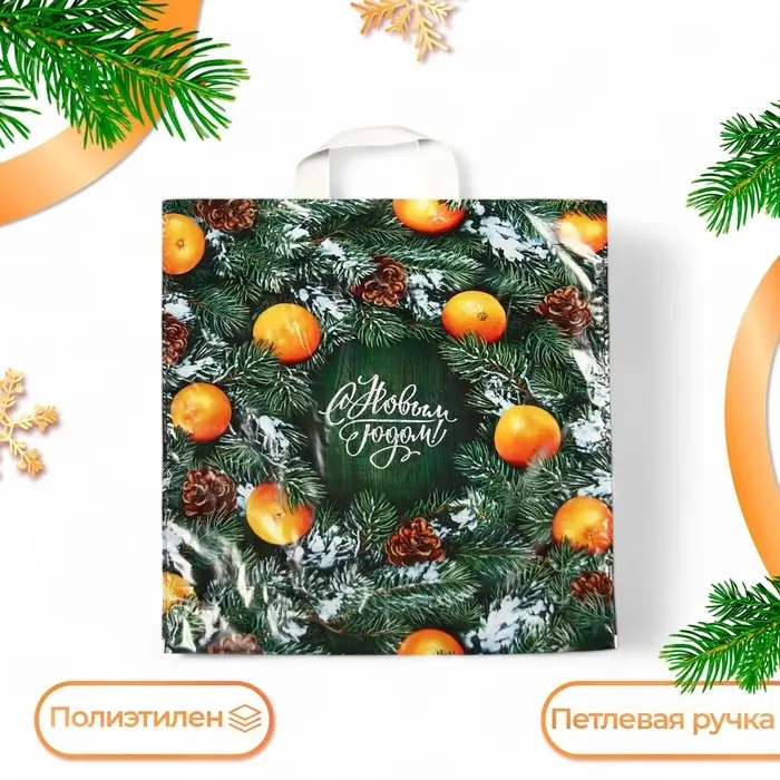 Пакет «Новогодний базар», полиэтиленовый с петлевой ручкой, 42×38 см