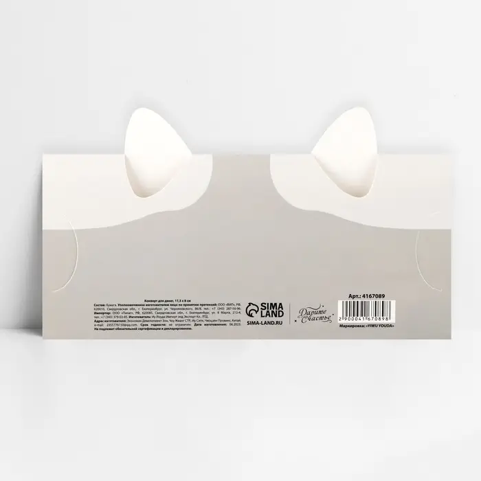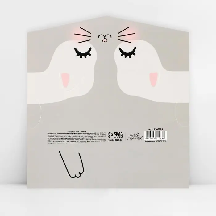 Конверт для денег фигурный «Котик», 17.5 х 8 см