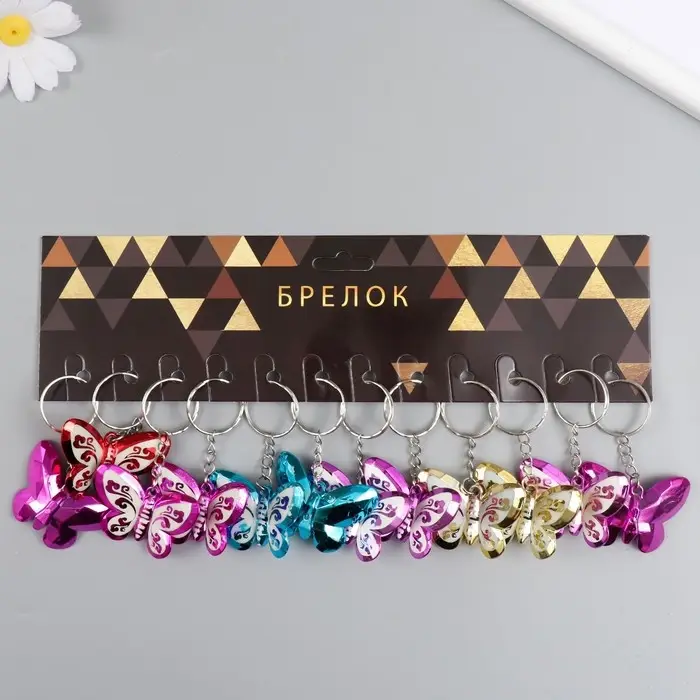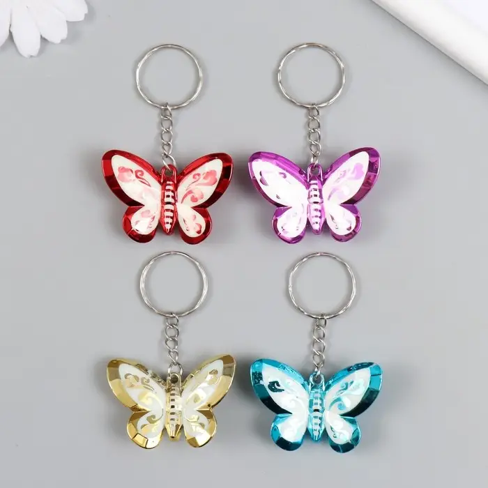 Брелок пластик под металл "Бабочка с узорами на крыльях" МИКС 3,5х4,7х0,5 см