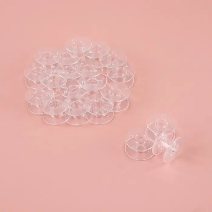 Пластиковые шпульки подойдут для намотки любого вида нитки. Благодаря прозрачным крышечкам вы быстро определите цвет нити, даже если она находится внутри швейной машины.
