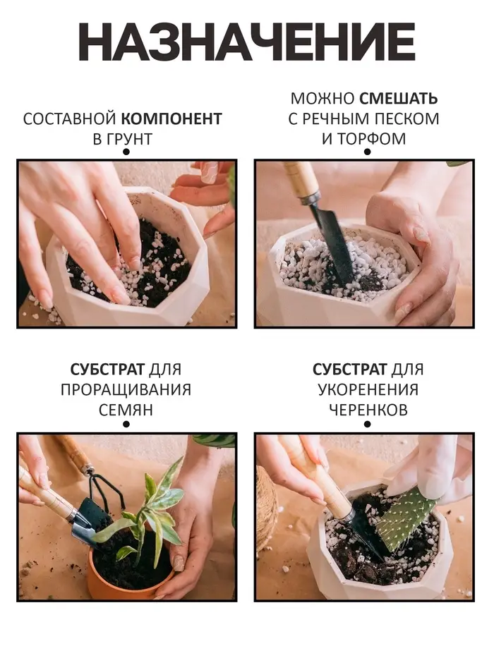 - компонент для земляной смеси: смешать с грунтом в соотношении 1:3 (на 1 часть перлита - 3 части почвы или грунта).