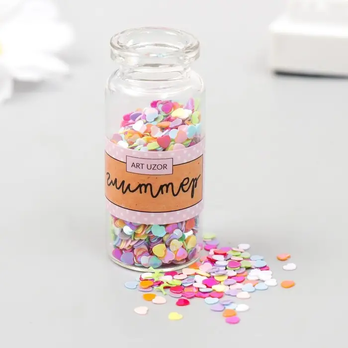 Глиттер в баночке "Сердечки микс" р-р 3 мм 7 гр 5х2х2 см