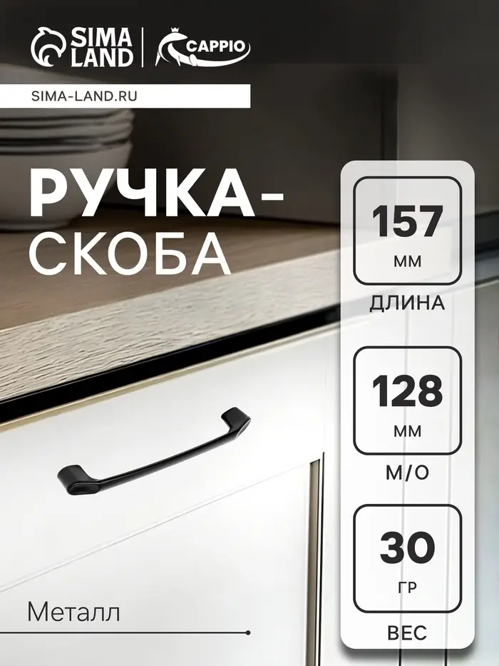 Ручка-скоба CAPPIO LIBERTY RSC019, м/о 128 мм, цвет черный