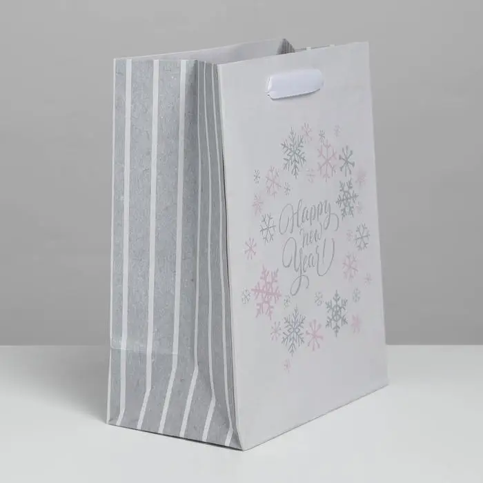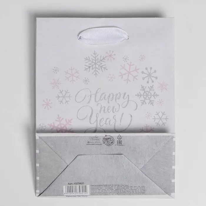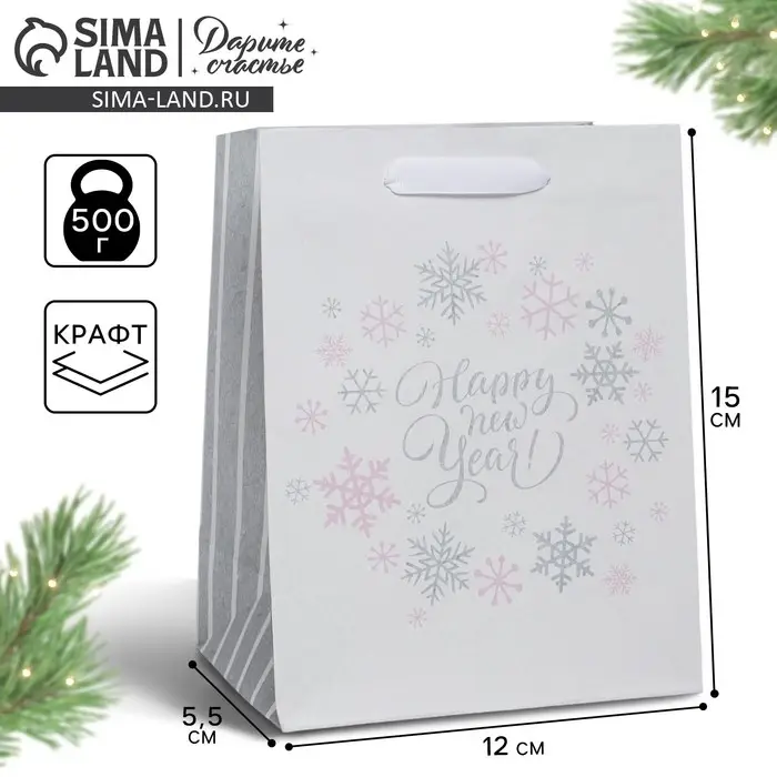 Пакет подарочный новогодний крафтовый «Happy new year!», 12 х 15 х 5.5 см