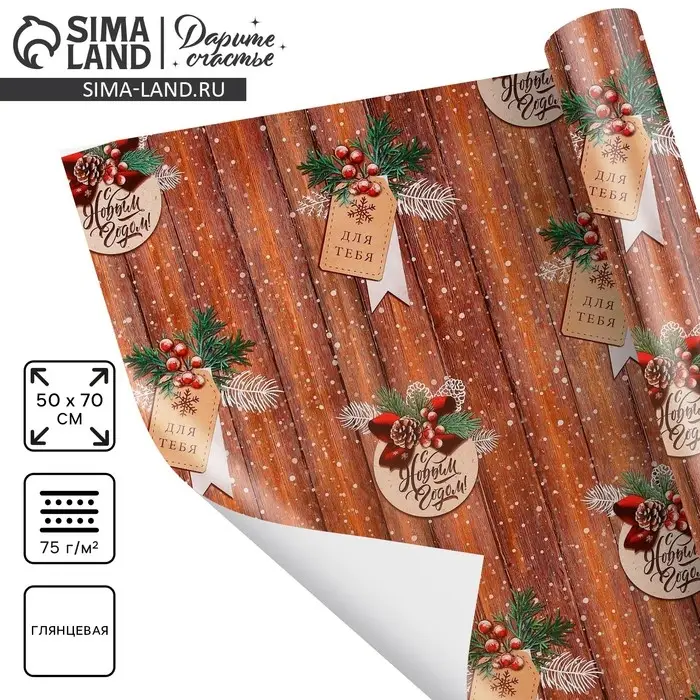 Упаковочная бумага на новый год «Для тебя», 50 х 70 см, глянцевая