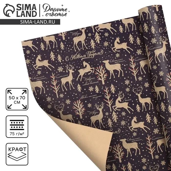 Бумага упаковочная крафтовая «Зимняя сказка», 50 х 70 см