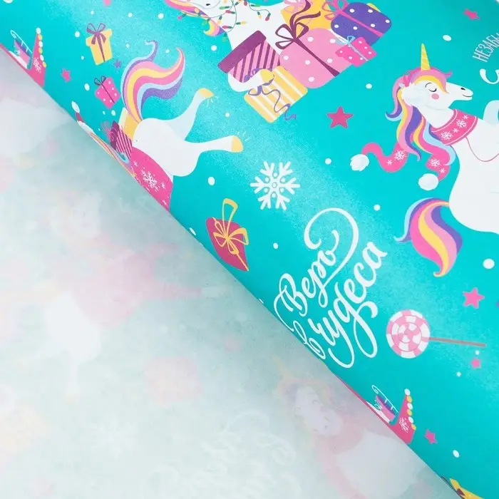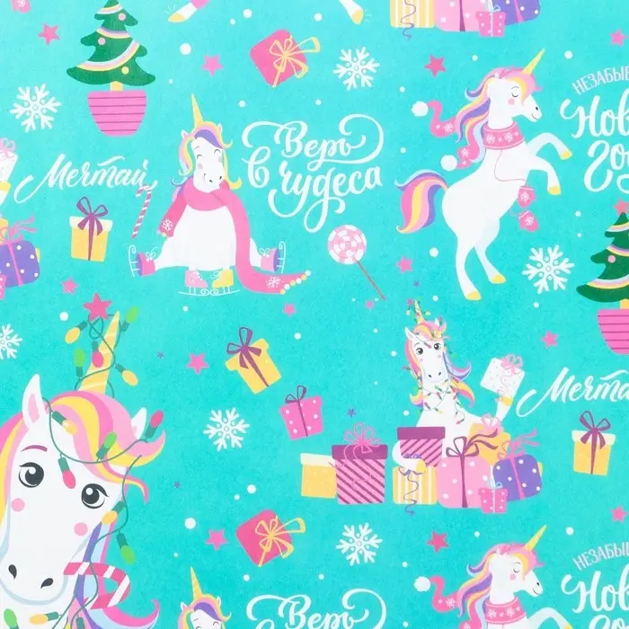 Бумага упаковочная крафтовая «Новогодний единорог», 50 х 70 см