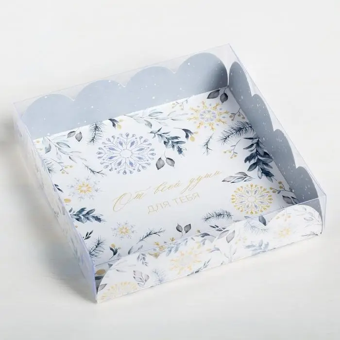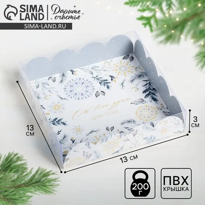 Коробка для кондитерских изделий с пластиковой крышкой «От всей души», 13 х 13 х 3 см