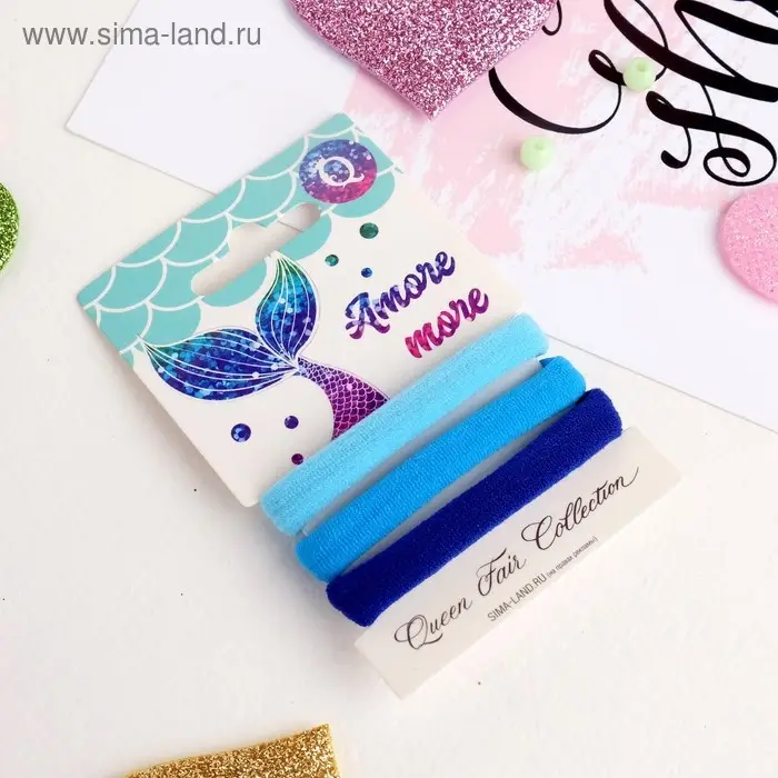Резинка для волос "Трио" (набор 3 шт) 5,5 см, синий голубой
