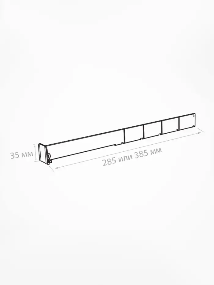 Пластиковый обламывающийся разделитель высотой 30 мм с передним ограничителем 35 мм, L=185-385 мм