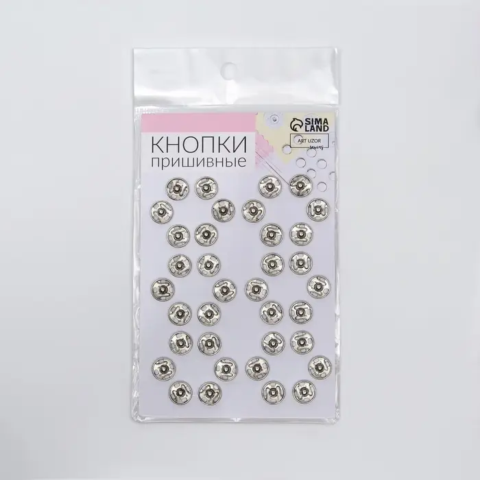 Кнопки пришивные, d=10 мм, 36 шт., цвет серебряный