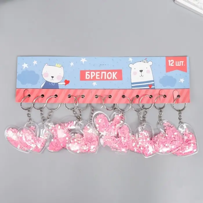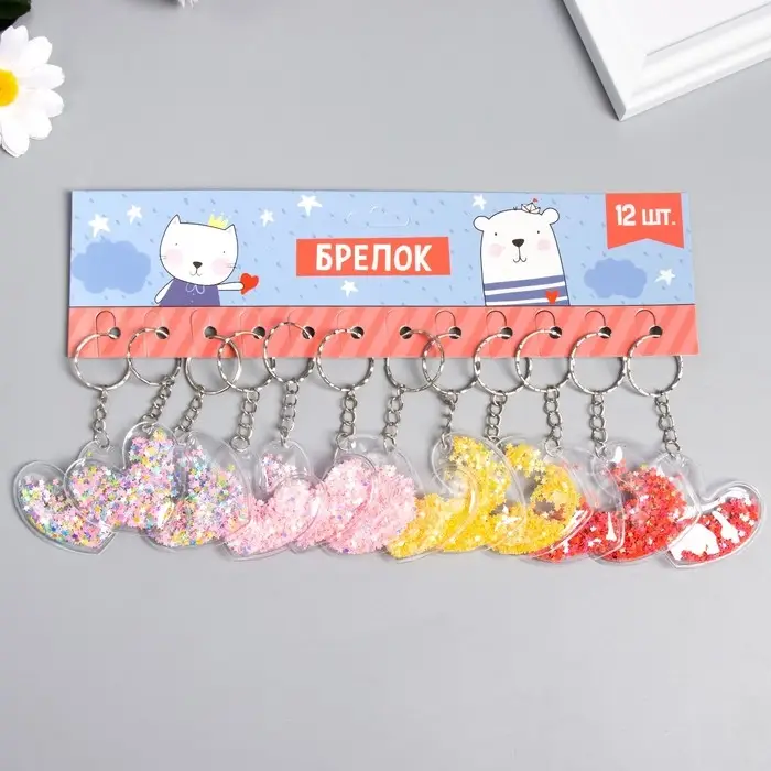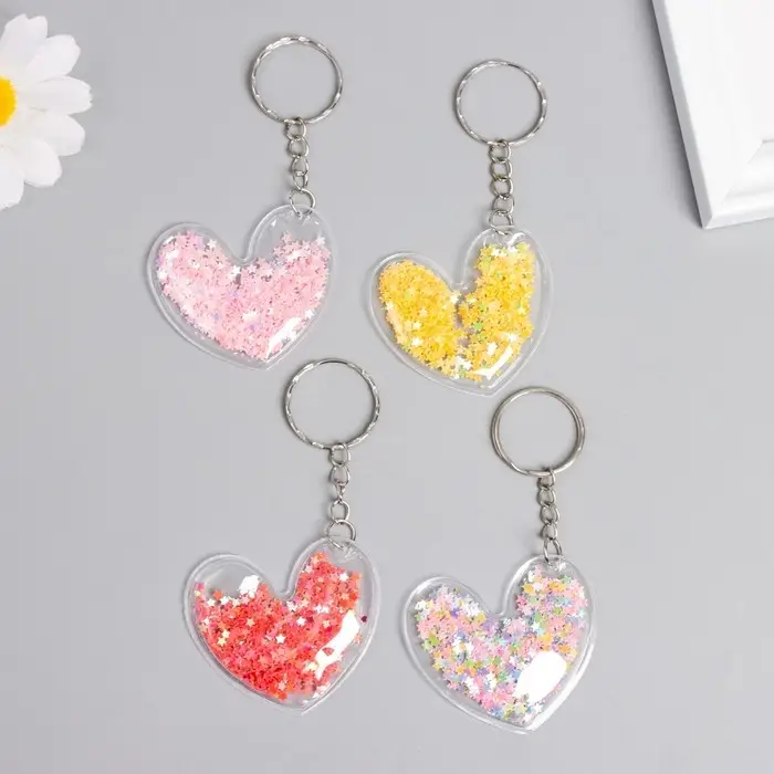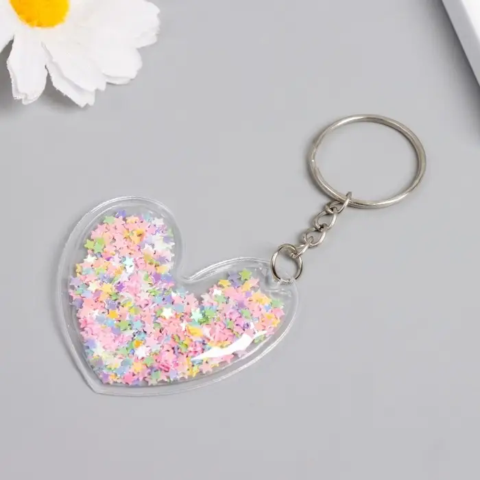 Брелок для ключей на кольце «Сердечко», пластик с глиттером, 5.2×4.8 см, МИКС