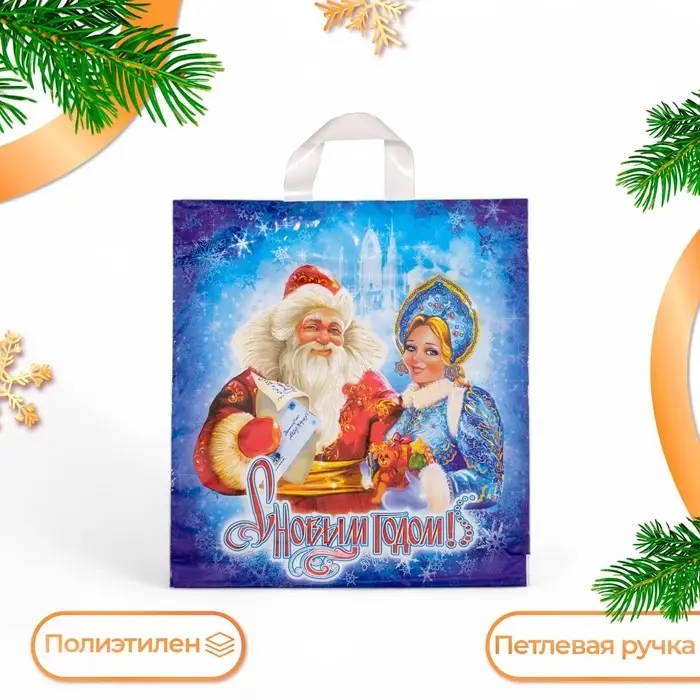Пакет «Новогоднее послание», полиэтиленовый с петлевой ручкой, 40×42 см