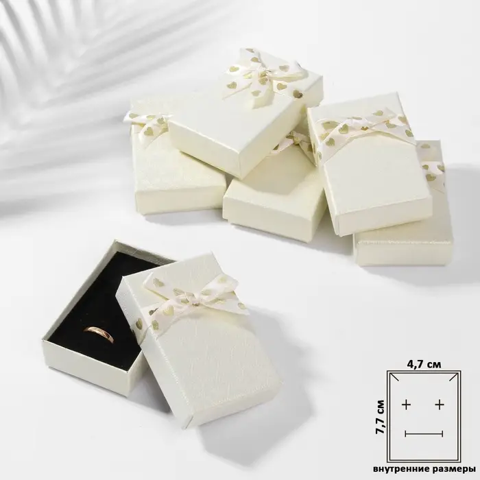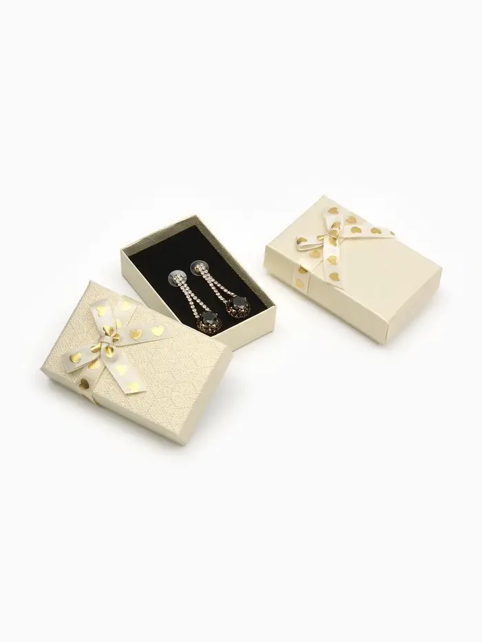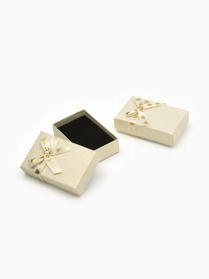 С нашими прекрасными коробочками любой подарок станет еще лучше и ярче. Футляр выполнен из прочного плотного картона. Оптимальный размер коробки 5*8см позволяет разместить разнообразные виды ювелирных изделий – от сережек до колье. Внутри каждой коробочки с крышкой есть черная бархатная подложка. С помощью специальных прорезей на подушечке можно аккуратно разместить и зафиксировать цепочки, гвоздики и перстни. А если убрать подложку, упаковка подойдет даже для часов с мягким плоским ремешком или на цепи.