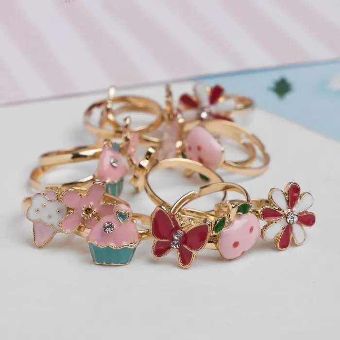 Кольцо детское «Выбражулька» ассорти для девочек, форма МИКС, цвет МИКС, безразмерное