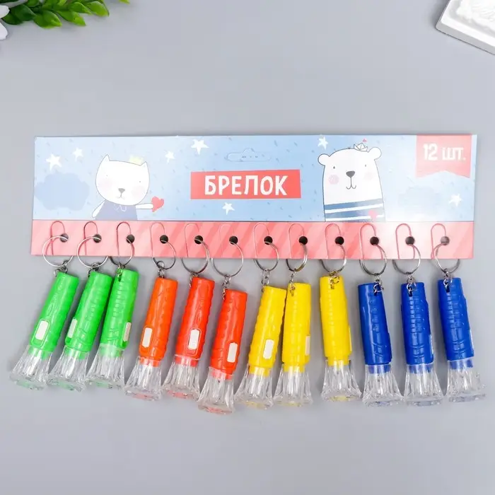 Миниатюрный, но эффектный, брелок «Ромбики» размером 6,8х2,2х2,2 см, выполнен из прочного пластика (МИКС цветов). Его геометрический рисунок, состоящий из ромбов, придает ему стильный и запоминающийся вид. Он идеально впишется в любую вашу комбинацию ключей, а яркий свет поможет вам найти нужный предмет в темноте.